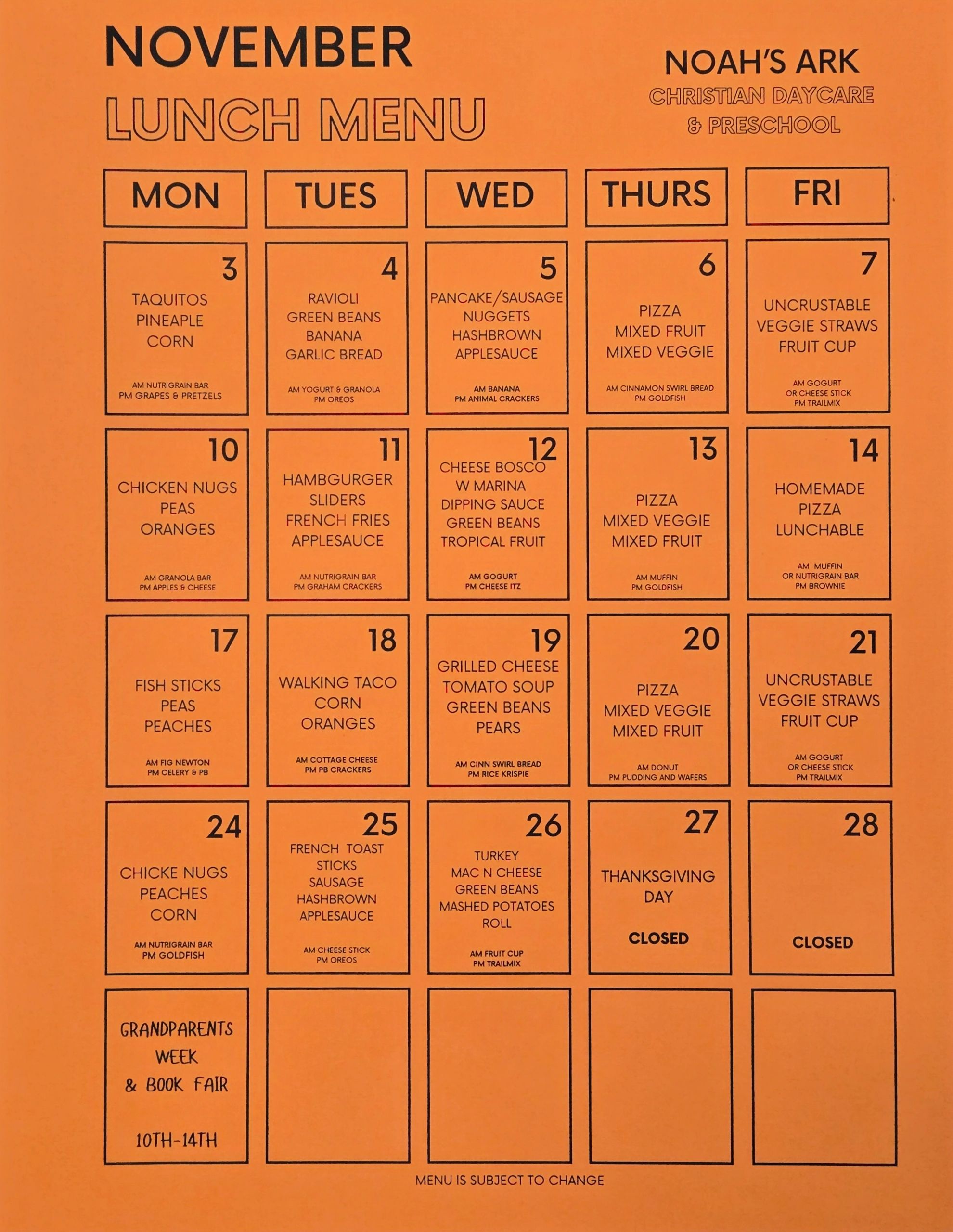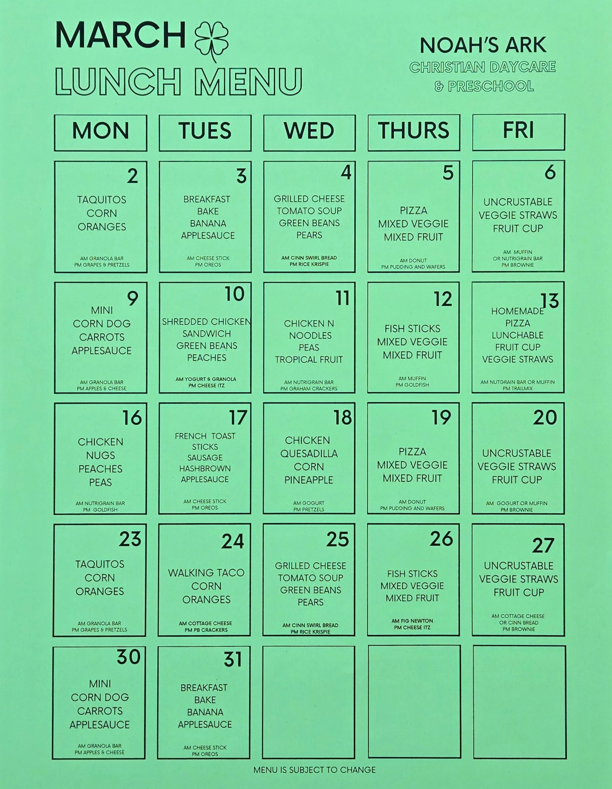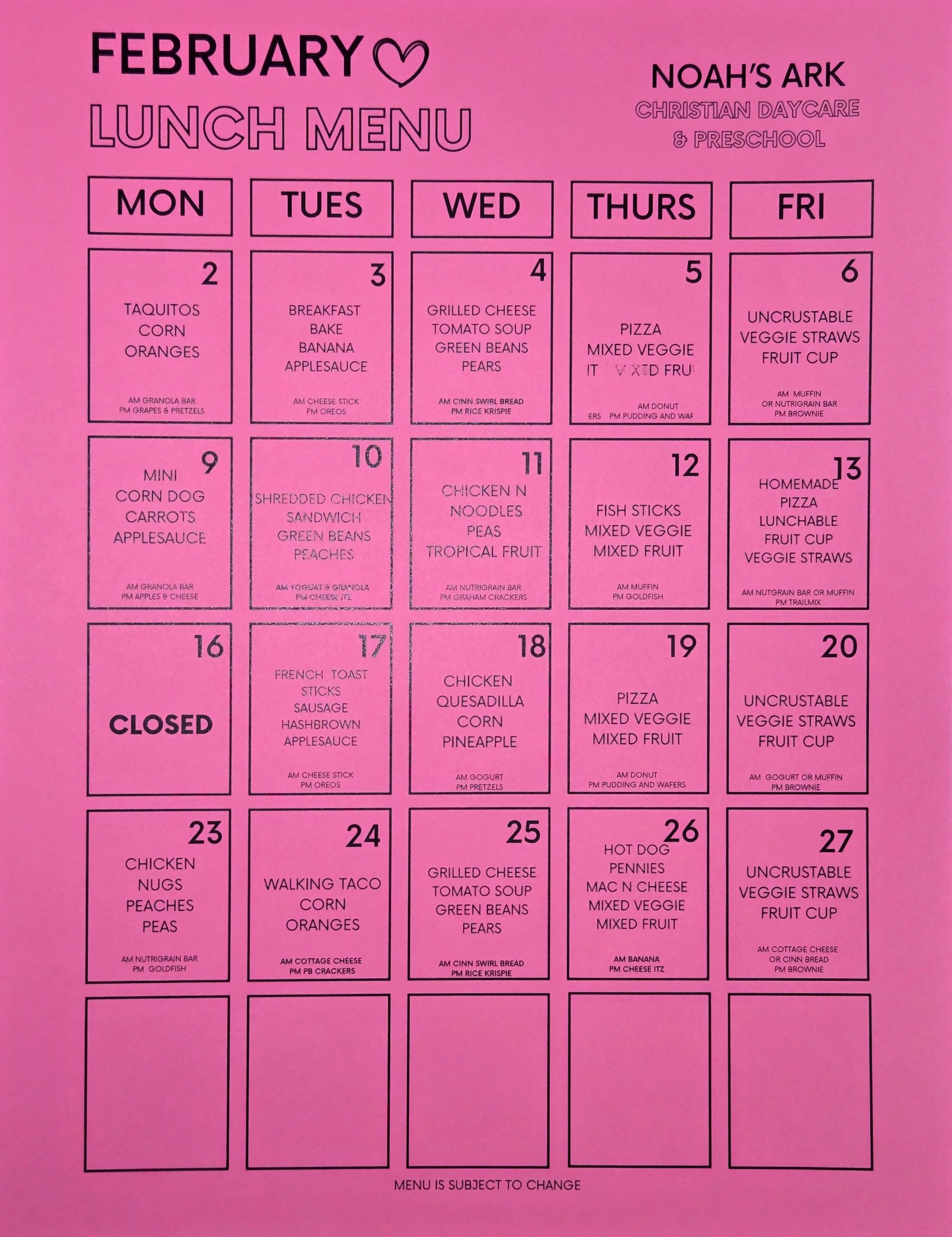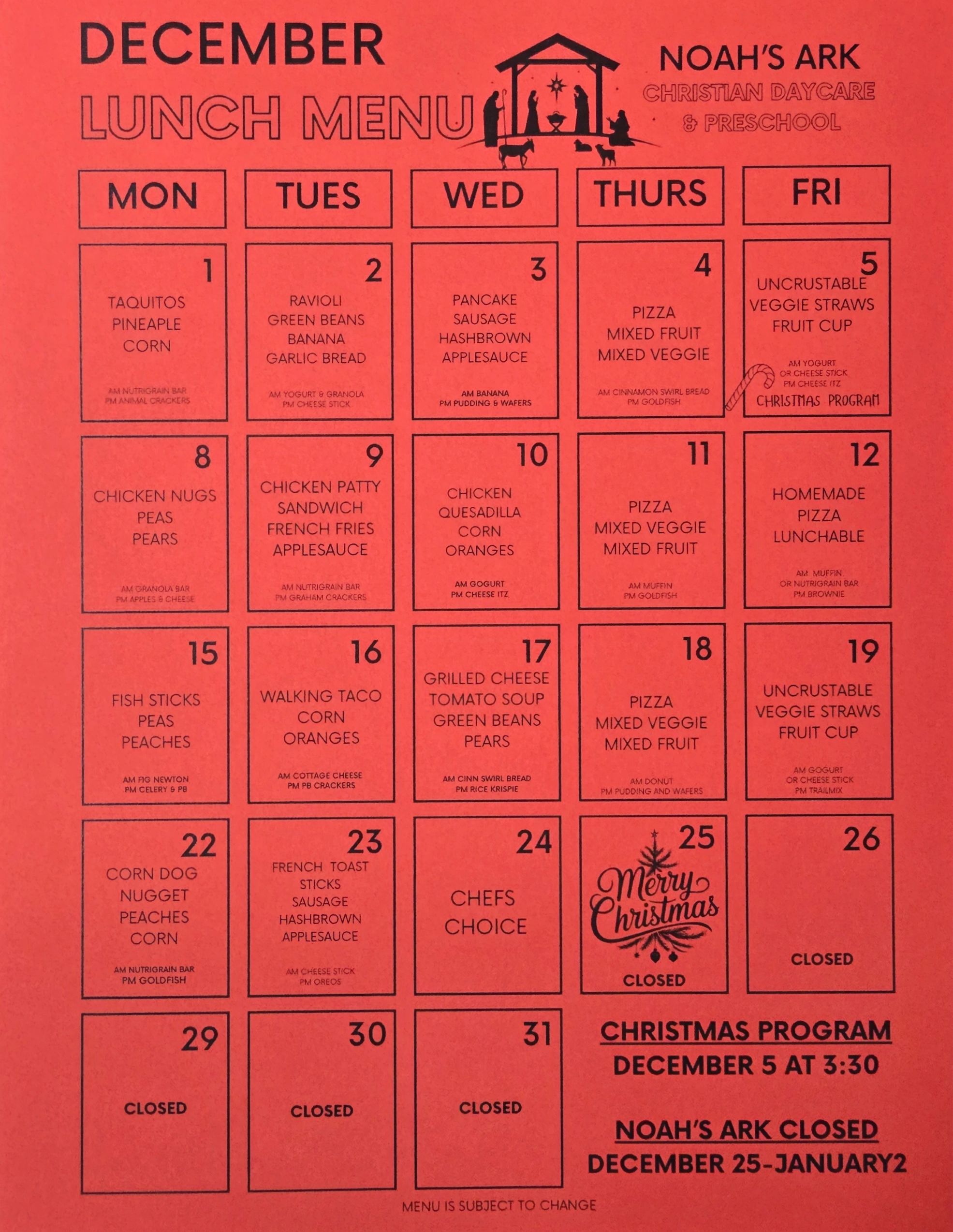 Noah's Ark Christian Daycare & Preschool admits students of any race, color and national or ethnic origin.